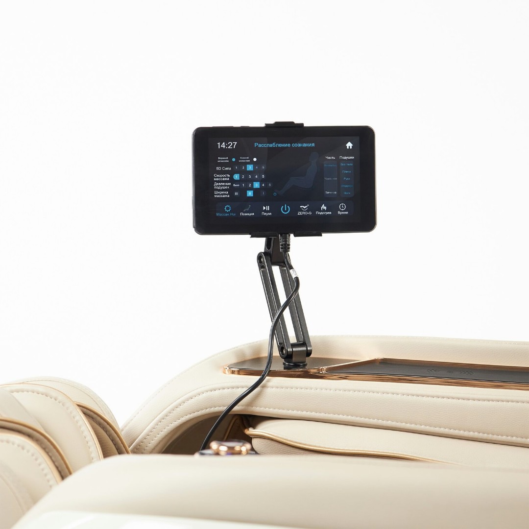 - Эргономичная конструкция подлокотников обеспечивает оптимальный угол наклона и естественное положение рук, создавая максимальный комфорт во время массажа