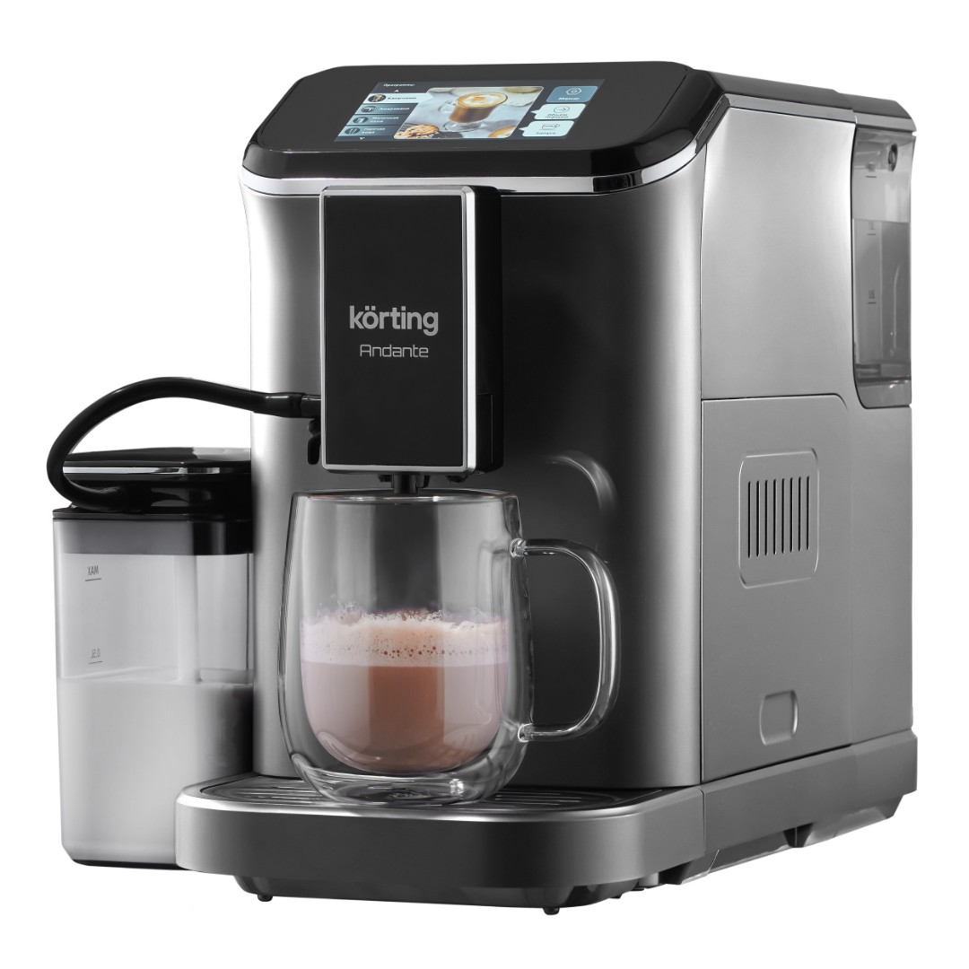 Кофемашина Korting KACM 2003 Andante выполнена в серебристом цвете и предназначена для приготовления напитков как с использованием молотого, так и зернового кофе. Оснащенная итальянской помпой с давлением 20 бар, она обеспечивает идеальное извлечение ароматов и вкусов. Модель предлагает индивидуальную настройку с восемью автопрограммами и возможностью ручной настройки, что дает возможность пользователю создавать и сохранять собственные рецепты. Сенсорный экран с видеосопровождением упрощает выбор и управление прибором. Кофемашина предлагает 15 видов помола, а встроенный капучинатор позволяет готовить восхитительные кофейные напитки с молоком всего одним касанием. Резервуар для молока объемом 750 мл, входящий в комплект, обеспечивает дополнительное удобство — его можно размещать в холодильнике для хранения и охлаждения напитка.