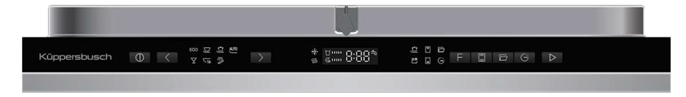 Панель управления посудомоечной машиной расположена сверху двери внутри прибора. Во время работы интегрированных посудомоечных машин не всегда точно ясно, на каком этапе выполнения программы находится прибор. При помощи нового сигнала "Beam on floor", – красной точки, отражающейся на полу, – Вы сразу узнаете, закончился процесс мытья или нет. Мигающий сигнал указывает на неполадки.