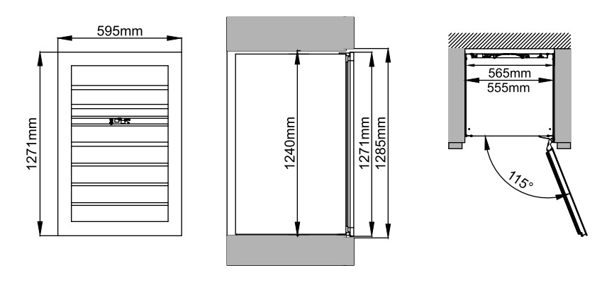 - При установке с помощью ножек отрегулируйте винный шкаф по уровню и убедитесь в наличии необходимых зазоров между дверью и мебельными фасадами, чтобы не повредить их.