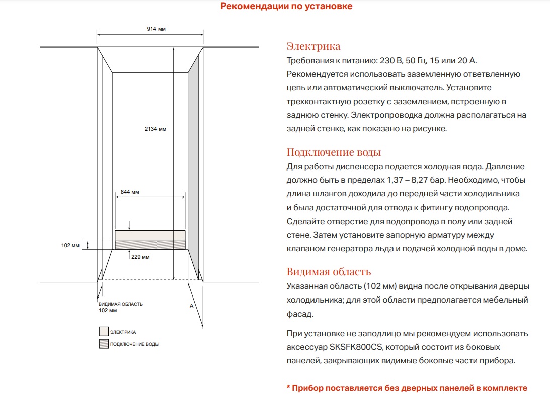 - Комплект боковых панелей при установке не заподлицо: SKSFK800CS